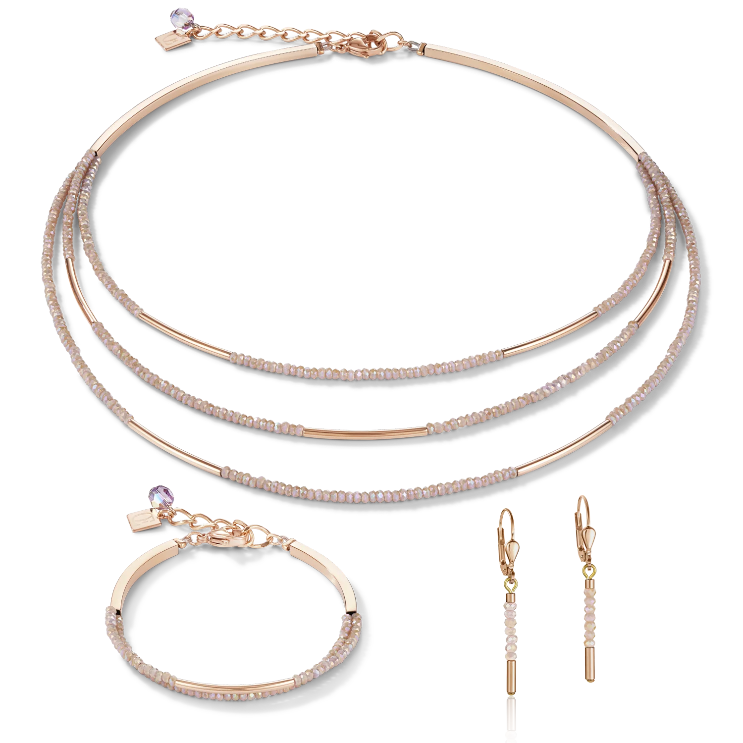 -70% Boucles d'oreille Cascade acier inoxydable or rose & verre nude— Description