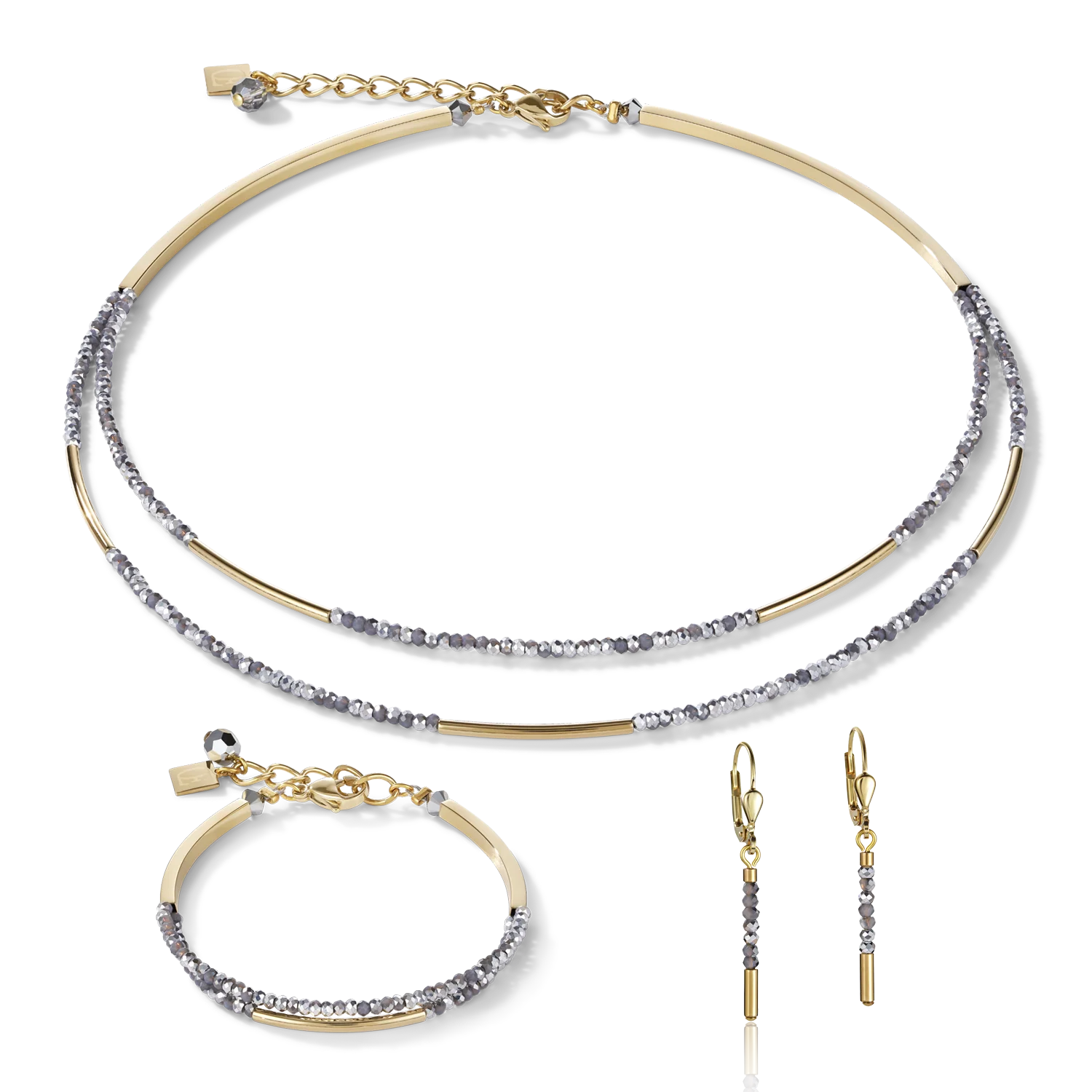 Boucles d'oreille Cascade small acier inoxydable or & verre argent—