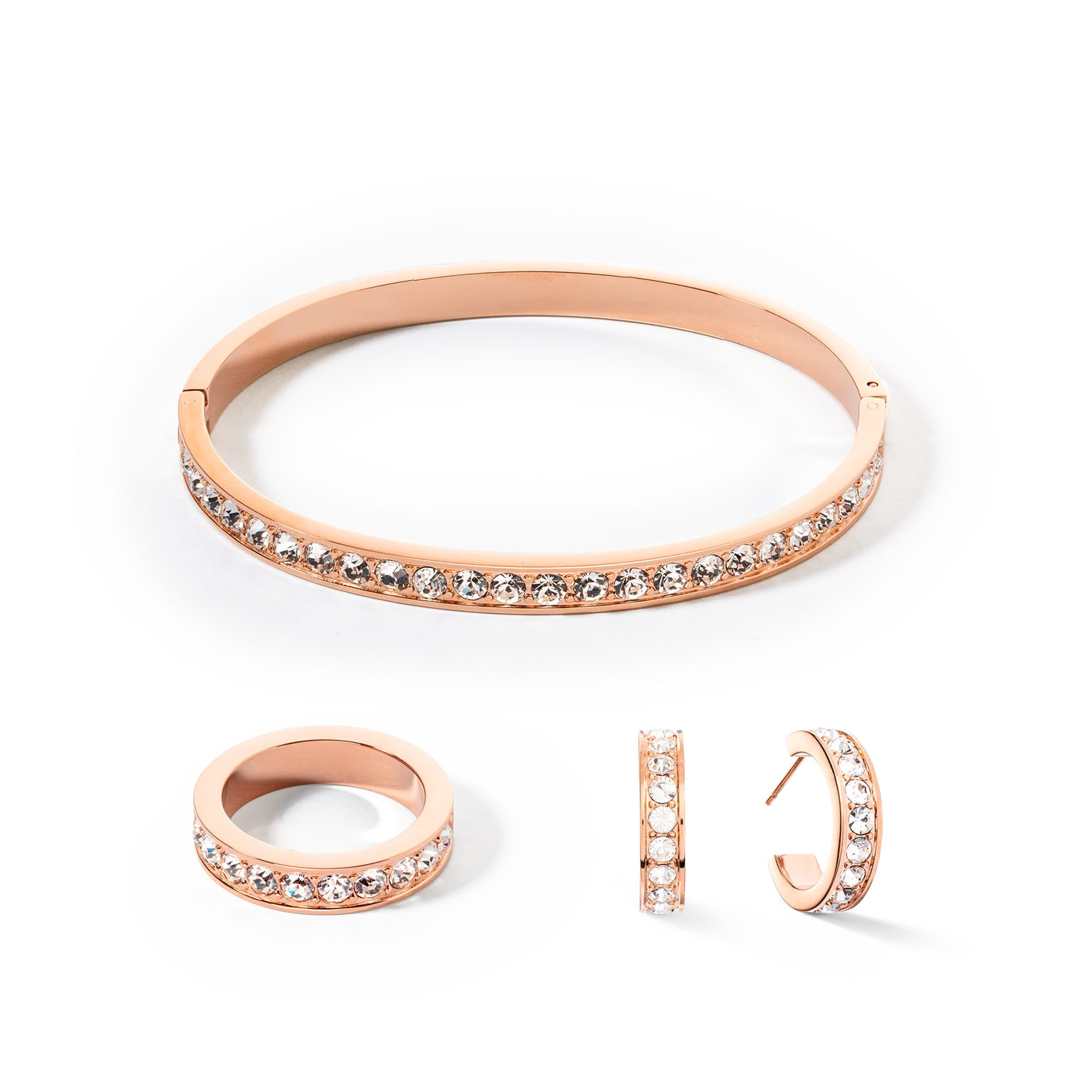 Boucles d'oreille Acier or rose & bande Pavé de Cristaux cristal
