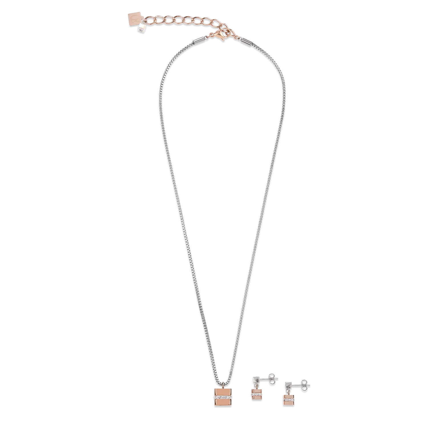Boucles d'oreille Cube acier inoxydable or rose & cristaux pavé cristal—