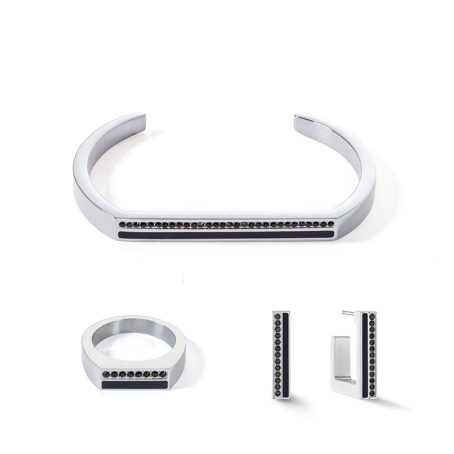 Êtes-vous prête pour une tendance dans les bijoux qui éveille vos sens ? Nos créoles carrées en acier inoxydable en argent et noir éclatants : un incontournable absolu pour toutes celles qui aiment la mode. Grâce à leur fascinant mélange de matériaux composé de cristaux aux vives couleurs et de bandes colorées assorties, ces boucles d’oreilles confèreront à votre look fraîcheur et modernité. Également disponibles : un bracelet jonc et des bagues assortis.