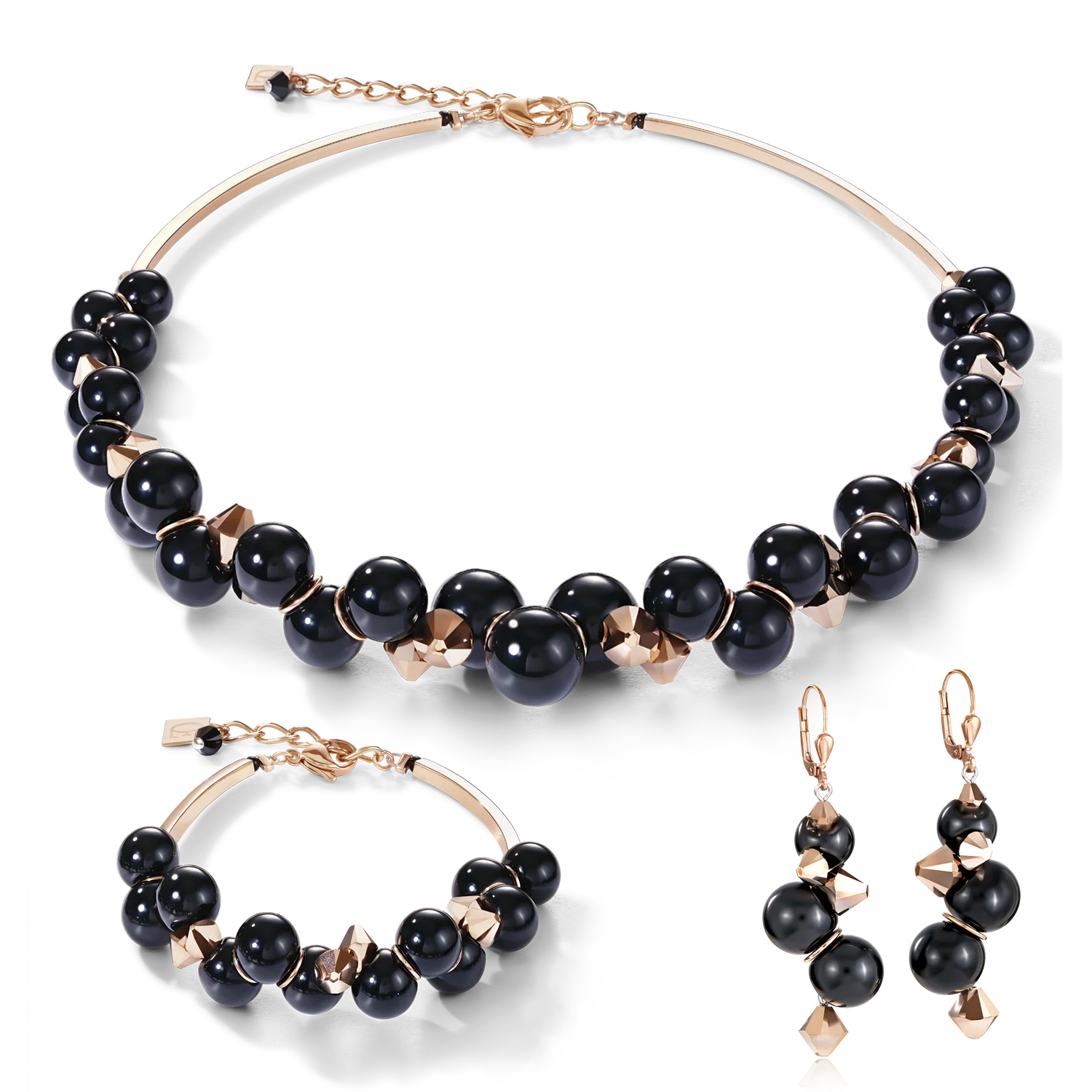 Toujours bien vue. Superbe bracelet intemporel orné de sphères noires et de cristaux Swarovski® rose doré.