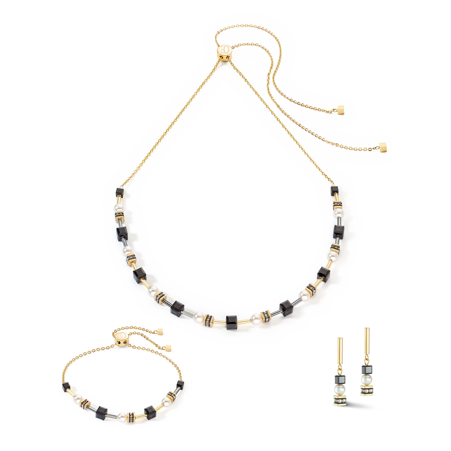 Nos magnifiques Mysterious Cubes & Pearls ! L’alliance raffinée d’élégants et intemporels cristaux Swarovski® noirs et d’élégantes Crystal Pearls. Son très pratique fermoir coulissant permet un ajustement personnalisé de sa longueur. Idéal pour créer des superpositions. À assortir avec : un bracelet et des boucles d’oreilles Mysterious Cubes & Pearls en or et noir.